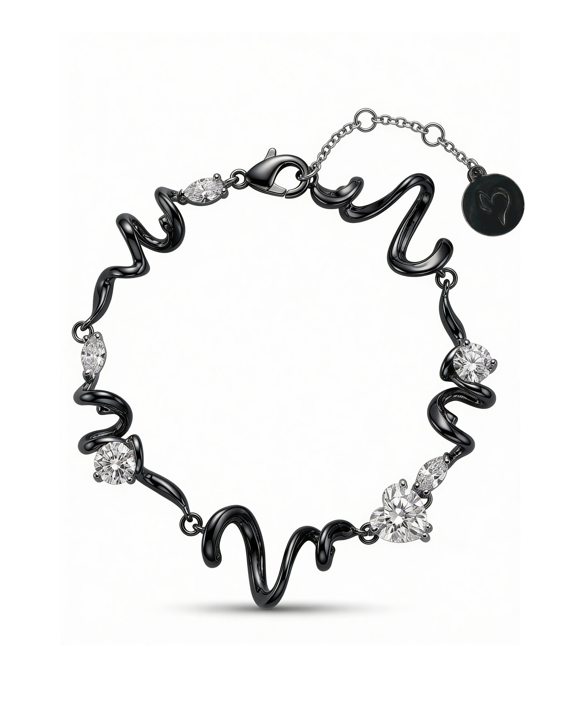 A delicate balance of fluidity and brilliance, the Colette Bracelet captivates with its undulating silhouette, evoking the effortless movement of flowing lines. Adorned with sparkling cubic zirconia stones, each twist catches the light, creating a subtle yet striking radiance.